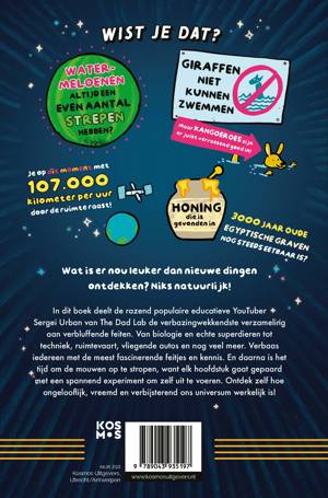 In dit boek deelt de razend populaire educatieve YouTuber Sergei Urban van TheDadLab de verbazingwekkendste verzameling aan verbluffende feiten. Van biologie en echte superdieren tot techniek, ruimtevaart, vliegende auto's en nog veel meer. Verbaas iedereen met de meest fascinerende feitjes en kennis. En daarna is het tijd om de mouwen op te stropen, want elk hoofdstuk gaat gepaard met een spannend experiment om zelf uit te voeren. Ontdek zelf hoe ongelooflijk, vreemd en verbijsterend ons universum werkelijk is met experimenten en activiteiten om je vrienden en familie mee te verbazen!