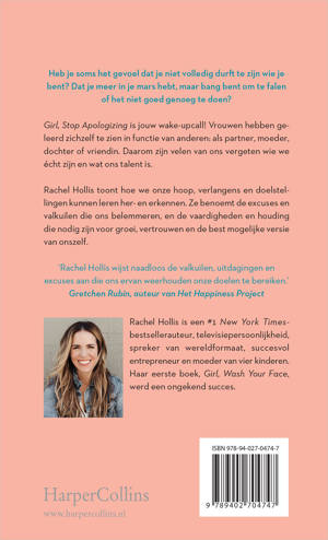 Winnaar Best Nonfiction Award Goodreads 2019 Heb je ooit het gevoel gehad dat je niet volledig durft te zijn wie je bent? Dat je meer in je mars hebt, maar bang bent om te falen, het niet goed genoeg te doen of om te worden aangesproken op je ambitie?Girl, Stop Apologizing is jouw wake-upcall! Vrouwen hebben geleerd zichzelf te zien in functie van anderen: als partner, moeder, dochter of vriendin. Daarom zijn velen van ons vergeten wie we écht zijn en wat ons talent is. Rachel Hollis toont hoe we onze hoop, verlangens en doelstellingen kunnen leren her- en erkennen. Ze benoemt de excuses en valkuilen die ons belemmeren, en de vaardigheden en houding die nodig zijn voor groei, vertrouwen en de best mogelijke versie van onszelf.Over Girl, Stop Apologizing'Hét boek voor iedereen die wil stoppen met het verzinnen van excuses en aan de slag wil met zijn dromen.' - Glamour