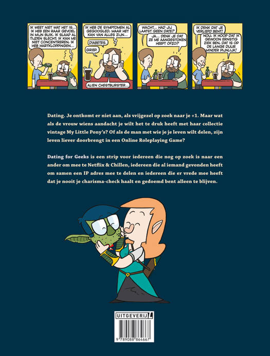Dating for Geeks is een strip voor iedereen die nog op zoek is naar een ander om mee te Netflix & Chillen, iedereen die al iemand gevonden heeft om samen een IP adres mee te delen en iedereen er vrede mee heeft dat je nooit je charisma check haalt en gedoemd bent alleen te blijven.