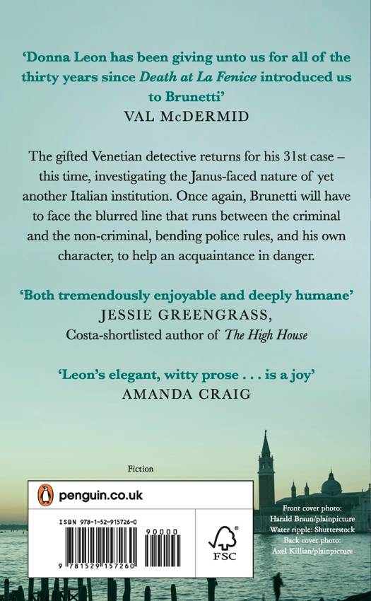 The gifted Venetian detective returns in his 31st case - this time, investigating the Janus-faced nature of yet another Italian institution. Brunetti will have to once again face the blurred line that runs between the criminal and the non-criminal, bending police rules, and his own character, to help an acquaintance in danger.