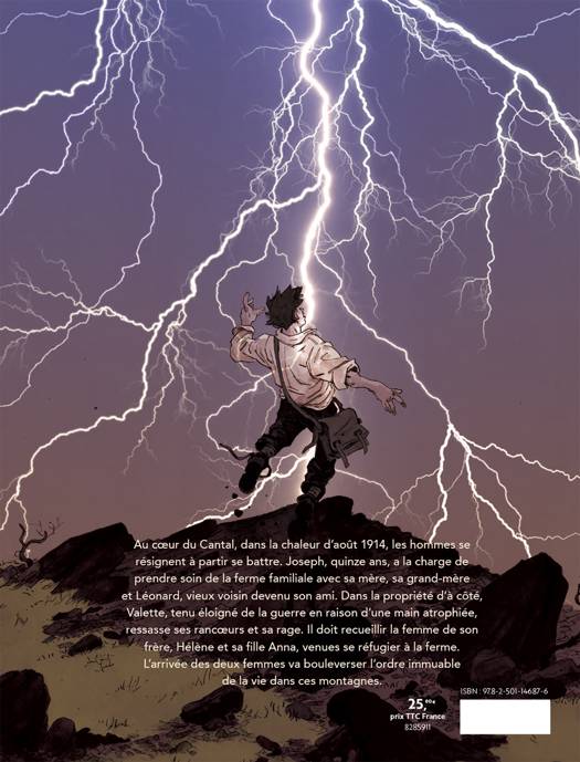 Au cœur du Cantal, dans la chaleur d’août 1914, les hommes se résignent à partir se battre. Joseph, quinze ans, a la charge de prendre soin de la ferme familiale avec sa mère, sa grand-mère et Léonard, vieux voisin devenu son ami. Dans la propriété d’à côté, Valette, tenu éloigné de la guerre en raison d’une main atrophiée, ressasse ses rancœurs et sa rage. Il doit recueillir la femme de son frère, Hélène et sa fille Anna, venues se réfugier à la ferme. L’arrivée des deux femmes va bouleverser l’ordre immuable de la vie dans ces montagnes.