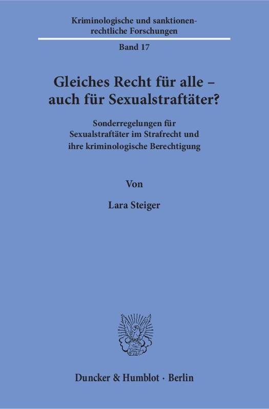 Die Autorin kommt zu dem Ergebnis, dass im Hinblick auf Sexualstraftäter nicht der Grundsatz »Gleiches Recht für alle« gilt. Ein Großteil der Sonderregelungen für Sexualdelinquenten ist aus kriminologischer Sicht nicht berechtigt. Vielmehr hat sich für diese Tätergruppe ein weitgehend symbolisches Sonderrecht etabliert.