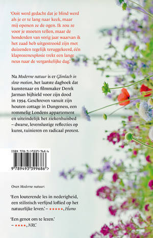 Na Moderne natuur is er Glimlach in slow motion, het laatste dagboek dat kunstenaar en filmmaker Derek Jarman bijhield voor zijn dood in 1994. Geschreven vanuit zijn houten cottage in Dungeness, een rommelig Londens appartement en uiteindelijk het ziekenhuisbed – dwarse, levenslustige reflecties op kunst, tuinieren en radicaal protest.