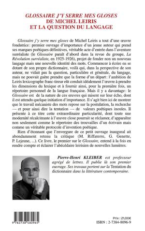 Rien d’étonnant que l’envergure de ce petit ouvrage inaugural ait abondamment retenu la critique (M. Riffaterre, G. Genette, P. Lejeune, ...). Ce livre, le premier sur le Glossaire, entend à la fois en rendre compte et éclairer l’abécédaire leirisien de nouvelles lumières.