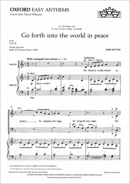 for SATB and organ or stringsThis short and easy anthem is a statement of the Christian intent, serene in its quiet confidence. Words are from the 1928 Book of Common Prayer. Scores and string parts are available on hire. Also available in John Rutter Anthems.