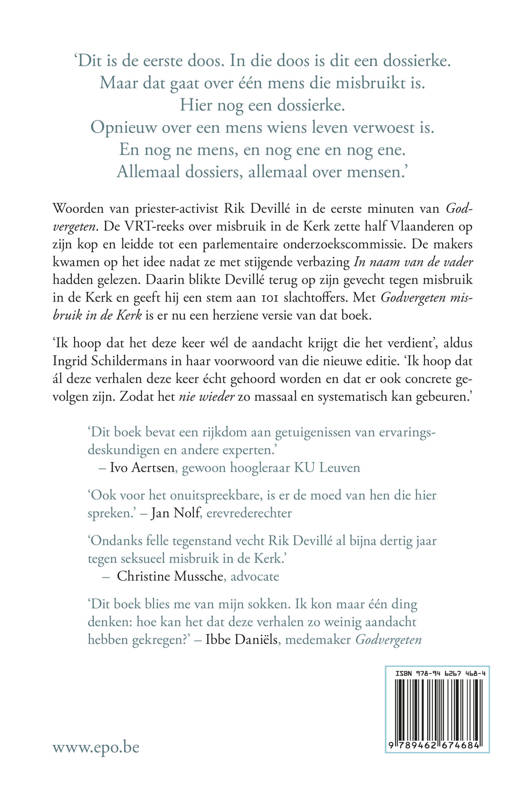 Met Godvergeten misbruik in de Kerk is er nu een herziene versie van dat boek. “Ik hoop dat het deze keer wél de aandacht krijgt die het verdient”, aldus Ingrid Schildermans in haar voorwoord van die nieuwe editie. “Ik hoop dat àl deze verhalen deze keer écht gehoord worden en dat er ook concrete gevolgen zijn. Zodat het nie wieder zo massaal en systematisch kan gebeuren.”