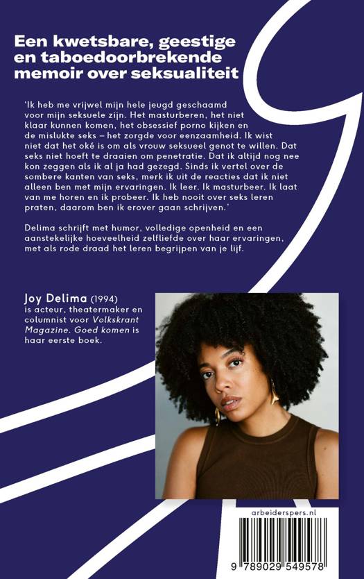In Goed komen schrijft Delima kwetsbaar, met humor en volledige openheid over haar ervaringen, met als rode draad het leren begrijpen van je lijf. Dat maakt het een belangrijk, urgent boek met een aanstekelijke hoeveelheid zelfliefde.