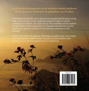 Is de Prediker iemand die ons in de put van moedeloosheid praat of ons zelfs in het moeras van de wanhoop brengt? De Prediker is uiterst realistisch en kritisch. Hij roept ons op om te midden van de raadsels van het leven God te respecteren. En intussen de scherven van het geluk op te rapen en te zien hoe die scherven schitteren in het zonlicht. In dit boekje dat inspireert en tot nadenken stemt, mediteert de theoloog Jan Hoek over deze gedachten van Prediker.