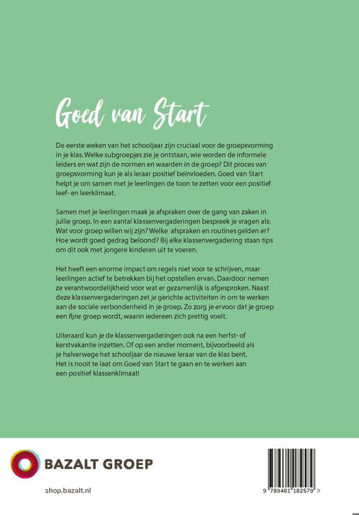 Goed van Start is een praktisch boek, ondersteund door onderzoek en theorie. Het is ontstaan op de werkvloer. De afgelopen jaren zijn vele leraren Goed van Start gegaan. Op basis van hun ervaringen is het boek geheel herzien, zodat je er nog makkelijker mee kunt werken.