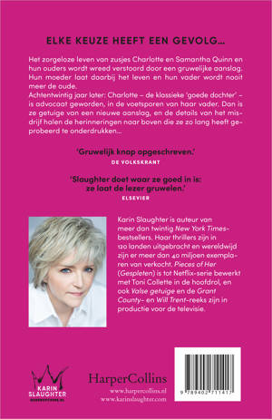 Karin Slaughter stelt nooit teleur; opnieuw een huiveringwekkende thriller die je uit je evenwicht brengt en je tot nadenken dwingt.