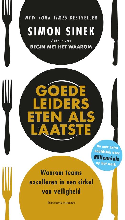 Simon Sinek, bekend van de bestseller Begin met het Waarom, legt in Goede leiders eten als laatste helder uit wat leiders kunnen doen om een cirkel van veiligheid in hun organisatie te creëren en mensen te laten floreren. Dit is de essentiële taak van een leider of manager, want zolang je je aandacht richt op mogelijk gevaar binnen de organisatie, heb je onvoldoende zicht op wat er buiten de organisatie gebeurt. Vertrouwen, een loyaal team en een goede samenwerking zijn noodzakelijk om adequaat op veranderende omstandigheden te reageren en optimaal te presteren. Goede leiders eten als laatste is een herziene editie van Een voor allen, allen voor een, met een uitbreiding geïnspireerd op Simon Sineks viral video ‘Millenials in the workplace’ en een handige bijlage vol praktische tips over leidinggeven aan deze nieuwe generatie.