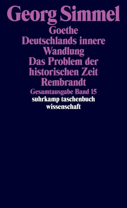Dieser Band vereinigt die beiden berühmten Monographien Goethe von 1912 und Rembrandt vom 1916, ergänzt um die einst separat erschienenen Vorträge Deutschlands innere Wandlung von 1914 und Das Problem der historischen Zeit von 1916. Die beiden Schriften Goethe und Rembrandt stießen bei ihrem Erscheinen auf starke Resonanz und große Beachtung in der Literatur- und Kunstwissenschaft und gehören bis heute fraglos zu den bekanntesten und einflußreichsten Studien Simmels.