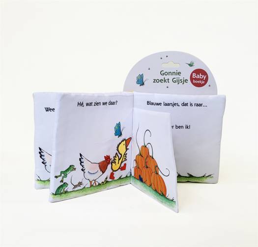 Dankzij de knispergeluidjes, flapjes en voelplekjes over de populaire gansjes Gonnie en Gijsje is het stoffen boekje 'Gonnie zoekt Gijsje' een perfect cadeautje voor een heel scala aan kleintjes. De jongste baby's zullen gebiologeerd zijn door de contrasten en het geknisper; als ze rond een jaar oud zijn, ontdekken ze de voelplekjes en het flapje waarachter Gijsje verstopt zit; en dreumesen zullen steeds meer kleine details ontdekken en het verhaaltje kunnen volgen. Het verhaal is bedacht en geschreven door Boekstart-deskundige Elly van der Linden.