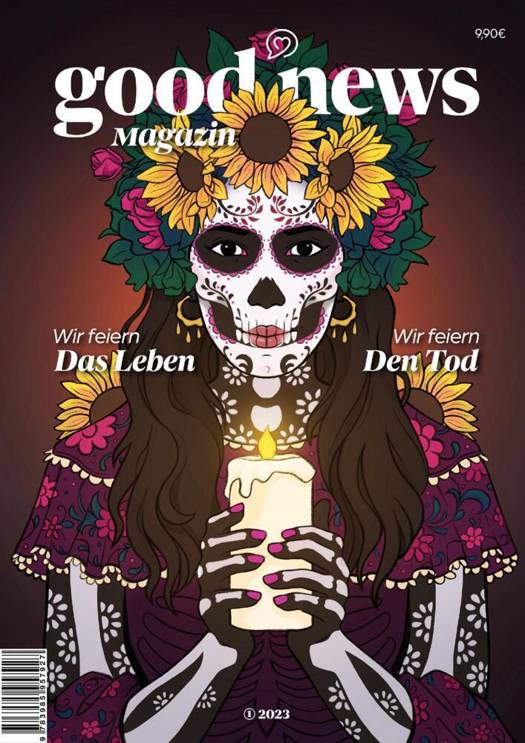 Hand aufs Herz - wer hat sich beim Lesen des Titels gedacht: "Tod ist doch nun wirklich kein Good-News-Thema!" I beg to differ, wie es im Englischen lapidar heißt, nicht zuerst im übertragenen Sinne, "ich bin anderer Meinung", sondern vor allem wörtlich übersetzt, "ich bitte darum, unterscheiden zu dürfen": Natürlich ist das Sterben oftmals eine traurige und schmerzhafte Angelegenheit, besonders dann, wenn Menschen zu früh sterben, Schmerzen leiden und Hinterbliebene eine wichtige Bezugsperson verlieren. Jedoch der Tod, als integraler Bestandteil des Lebens, ist nicht automatisch grausam. In vielen Kulturen der Welt wird der Tod bewusst ins Leben gelassen, die Toten unter die Lebenden geholt, ja der Tod gar farbenfroh und lautstark gefeiert. Auch in den westlichen Kulturen erfreuen sich Ableger des Death Positive Movement, einer Bewegung, die ehrliche Gespräche über Tod und Sterben als Eckpfeiler einer gesunden Gesellschaft betrachtet, immer größerer Bedeutung.In der vorliegenden Ausgabe des Good News Magazins haben wir uns daher nicht nur damit auseinandergesetzt, was das Leben lebenswert macht, sondern wir haben uns auch getraut, mit dem Todestabu zu brechen, um die schönen, erhellenden und bestärkenden Seiten am Ende des Lebens zu finden. Dafür nahmen wir unter anderem Traditionen wie den mexikanischen Día de los Muertos, das indonesiche Ma'Nene oder das japanische Obon-Fest unter die Lupe, begleiteten einen Schweizer Bestatter mit dem Leichenrad, diskutierten mit Dr. Eckart von Hirschhausen und den Indigenen Cofán Ecuadors darüber, wie wir unseren Planeten auch nach dem Tod kommenden Generation überlassen, durften einer Italienerin über die Hände schauen, die trostspendende Gegenstände aus der Kleidung Verstorbener anfertigt, lernten von Sterbenden auf einer Kölner Palliativstation, dass in Deutschland jeder Mensch am Lebensende friedlich einschlafen kann, und wir erhielten zahlreiche Bilder aus der Community zu alternativen Trauer- und Beerdigungsritualen.
