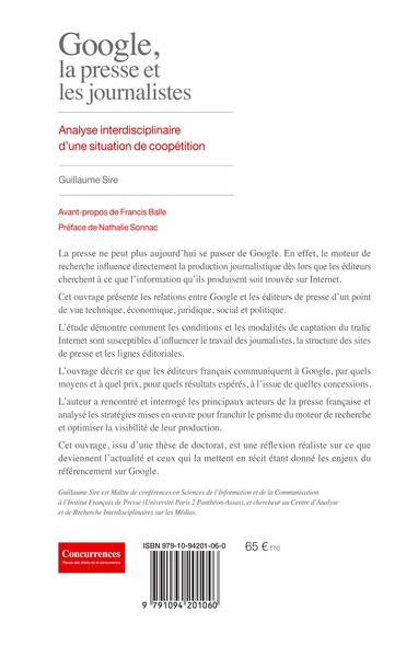 La presse ne peut plus aujourd’hui se passer de Google. En effet, le moteur de recherche influence directement la production journalistique dès lors que les éditeurs cherchent à ce que l’information qu’ils produisent soit trouvée sur Internet. Cet ouvrage présente les relations entre Google et les éditeurs de presse d’un point de vue technique, économique, juridique, social et politique.