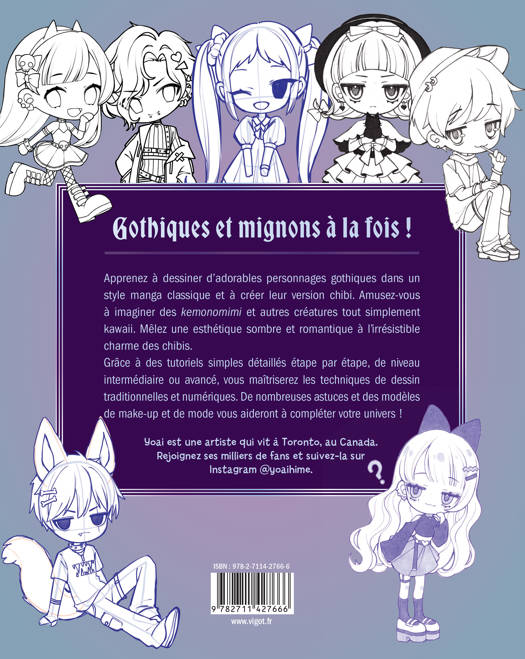 Apprenez à dessiner d’adorables personnages gothiques dans un style manga classique et à créer leur version chibi. Amusez-vous à imaginer des kemonomimi et autres créatures tout simplement kawaii. Mêlez une esthétique sombre et romantique à l’irrésistible charme des chibis.