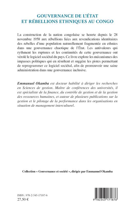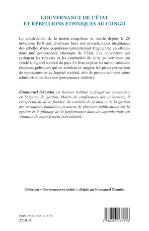 La construction de la nation congolaise se heurte depuis le 28 novembre 1958 aux rébellions liées aux revendications identitaires des rebelles d’une population naturellement fragmentée en ethnies dans une gouvernance chaotique de l’État. Les antivaleurs qui rythment les ruptures et les continuités de cette gouvernance ont vérolé le logiciel sociétal du pays. Ce livre explore les mécanismes des impasses politiques qui en résultent et suggère les pistes permettant de reprogrammer ce logiciel sociétal, afin de promouvoir une saine administration dans une gouvernance inclusive.