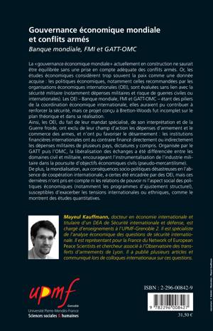 Pour l'OMC, il existerait une véritable gouvernance économique mondiale assumant le développement et la cohésion des économies nationales. Elle serait un facteur de paix. Pour les détracteurs des Organisations Economiques Internationales (OEI) - Banque Mondiale, FMI, GATT, OMC - ces derniers favorisent le déclenchement de conflits armés et sont aveugles à la problématique de la prévention des conflits armés.