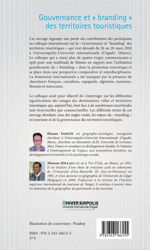 Spécialisé dans le management de marques, le branding est censé, en matières de tourisme, bonifier le potentiel touristique d'un territoire, d'une ville ou d'une localité. Il désigne une logique d'action promotionnelle visant à positionner un produit dans l'esprit du consommateur. Issu d'un colloque international qui s'est déroulé à Agadir, cet ouvrage a pour objectif de s'interroger sur les différentes significations des images des destinations, villes et territoires touristiques qui, aujourd'hui, font face à de nombreuses incertitudes tant structurelles que conjoncturelles. Les contributions abordent, sous des angles variés, les enjeux du « branding » en tourisme et de la gouvernance des territoires touristiques.