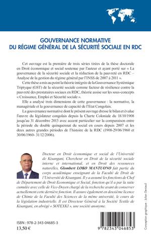 Dans sa thèse doctorale, l'auteur a mis au point la théorie intégrée de la Gouvernance Systémique Tryptique (GST) de la sécurité sociale comme facteur de résilience contre la pauvreté des prestataires sociaux en RDC, une théorie assise sur les sous-concepts "Croissance, Emploi et Sécurité sociale". Il analyse trois dimensions de cette gouvernance : la normative, la managériale et la gouvernance de capacité de l'Etat Congolais.