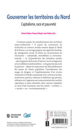 Comment penser les transformations des territoires (post-)industriels ? À partir du croisement de recherches en sciences sociales menées depuis le Nord de la France, cet ouvrage propose une approche localisée du changement social. Il éclaire les reconversions de l’économie – industrielle, immobilière et environnementale –, la (re)production des frontières raciales – dans la gestion de la main-d’oeuvre, l’accès au logement et les mobilités transfrontalières – et le gouvernement de la pauvreté – depuis les trajectoires de (dé)cohabitation des jeunes de classes populaires, l’encadrement des usages de drogues et l’expérimentation d’un revenu minimum à l’échelle communale. On y retrouve les élus, techniciens, patrons, militants et habitants qui portent, subissent ou s’opposent aux restructurations des sociétés capitalistes et post-coloniales, bien souvent impulsées au nom d’une transition sans fin, tantôt « tertiaire », « sociale » ou « environnementale ».
