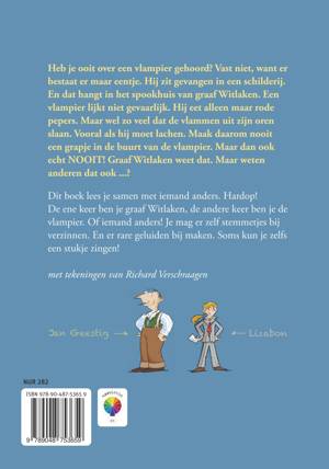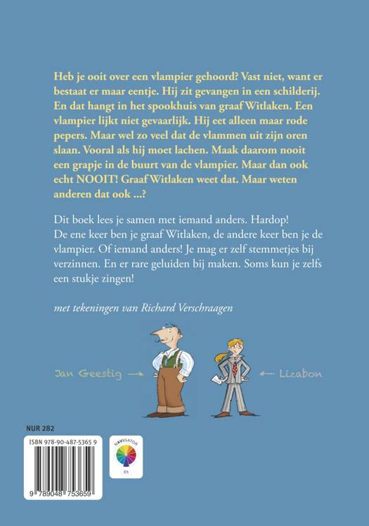 Heb je ooit over een vlampier gehoord? Vast niet, want er bestaat er maar eentje. Hij zit gevangen in een schilderij. En dat hangt in het spookhuis van Graaf Witlaken. Een vlampier lijkt niet zo gevaarlijk. Hij drinkt geen bloed en hij bijt geen mensen. Hij eet alleen maar rode pepers. En wel zo veel, dat de vlammen soms uit zijn oren slaan. Vooral als hij moet lachen. Dan schieten er steekvlammen uit zijn hoofd die alles verwoesten. Maak daarom nooit een grapje in de buurt van de vlampier. Maar dan ook echt NOOIT! Elk lolletje is bij hem bloedlink ... Graaf Witlaken weet dat. Maar weten de mensen die naar zijn spookhuis komen dat ook?