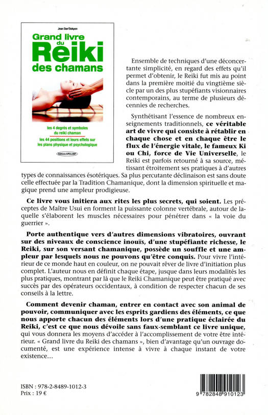 Ce livre vous initiera aux rites les plus secrets, qui soient. Les préceptes de Maître Usui en forment la puissante colonne vertébrale, autour de laquelle s'élaborent les muscles nécessaires pour pénétrer dans "la voie du guerrier". Porte authentique vers d'autres dimensions vibratoires, ouvrant sur des niveaux de conscience inouïs, d'une stupéfiante richesse, le Reiki, sur son versant chamanique, possède un souffle et une ampleur par lesquels nous ne pouvons qu'être conquis. Pour vivre l'intérieur de ce monde haut en couleur, on ne pouvait rêver de livre d'initiation plus complet. L'auteur nous en définit chaque étape, jusque dans leurs modalités les plus pratiques, montrant par là que le Reiki Chamanique peut être pratiqué avec succès par des opérateurs occidentaux, à condition de respecter chacun de ses conseils à la lettre. Comment devenir chaman, entrer en contact avec son animal de pouvoir, communiquer avec les esprits gardiens des éléments, ce que nous apporte chacun des éléments lors d'une pratique éclairée du Reiki, c'est ce que nous dévoile sans faux-semblant ce livre unique, qui vous donnera les moyens d'accéder à l'accomplissement de votre être intérieur. "Grand livre du Reiki chamanique", bien davantage qu'un ouvrage documenté, est une expérience intense à vivre à chaque instant de votre existence...