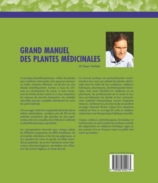 Le Dr Geert Verhelst, médecin orthomoléculaire et phytothérapeute, livre ici le fruit de plusieurs décennies de recherche, d’expérience et de passion pour les plantes médicinales. Cet ouvrage présente : - Une introduction présentant de manière approfondie les composants principaux, les actions physiologiques et les formes galéniques. - 202 monographies complètes et 201 fiches claires des plantes médicinales avec les principales propriétés, les indications thérapeutiques, les modalités d’utilisation, les synergies possibles avec d’autres plantes ainsi que des conseils pour un usage sûr. - Un répertoire thématique des pathologies pour un usage facilité.