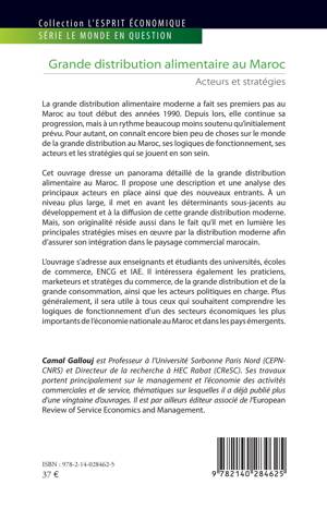 La grande distribution alimentaire moderne a fait ses premiers pas au Maroc au tout début des années 90. Depuis, elle continue sa progression mais à un rythme beaucoup moins soutenu que prévu. Pour autant, on connaît encore bien peu de choses sur le monde de la grande distribution au Maroc, ses logiques de fonctionnement, ses acteurs et les stratégies qui s'y jouent. Cet ouvrage propose une description et une analyse des principaux acteurs en place ainsi que des nouveaux entrants. Il met en avant les déterminants sous-jacents au développement et à la diffusion de cette grande distribution moderne. Mais son originalité réside aussi dans le fait qu'il met en lumière les principales stratégies mises en oeuvre par la distribution moderne afin d'assurer son intégration dans le paysage commercial marocain. L'ouvrage sera utile à tous ceux qui souhaitent comprendre les logiques de fonctionnement d'un des secteurs les plus importants de l'économie au Maroc et dans les pays émergents.