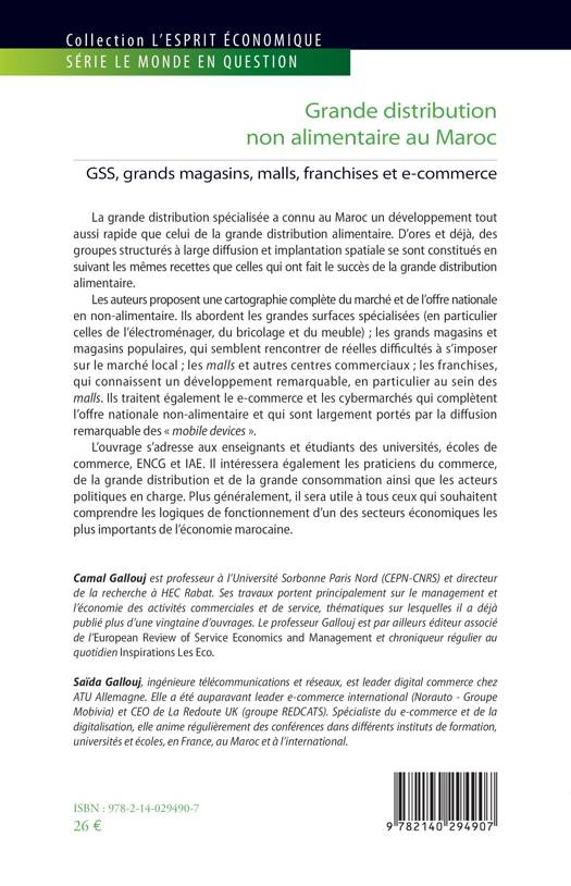 La grande distribution spécialisée a connu au Maroc un développement tout aussi rapide que celui de la grande distribution alimentaire. D'ores et déjà, des groupes structurés à large diffusion et implantation spatiale se sont constitués en suivant les mêmes recettes que celles qui ont fait le succès de la grande distribution alimentaire. Les auteurs proposent une cartographie complète du marché et de l'offre nationale en non-alimentaire. Ils abordent les grandes surfaces spécialisées (en particulier l'électroménager, le bricolage et le meuble); les grands magasins et magasins populaires, qui semblent rencontrer de réelles difficultés à s'imposer sur le marché local; les malls et autres centres commerciaux; les franchises, qui connaissent un développement remarquable, en particulier au sein des malls. Ils traitent également le e-commerce et les cybermarchés qui complètent l'offre nationale non-alimentaire et qui sont largement portés par la diffusion remarquable des mobile devices .