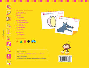 38 fiches détachables : Motricité fine. Espace. Les points. Les verticales. Les horizontales. Les obliques. Les zigzaGS. Les ronds. Les ponts. Les vagues.