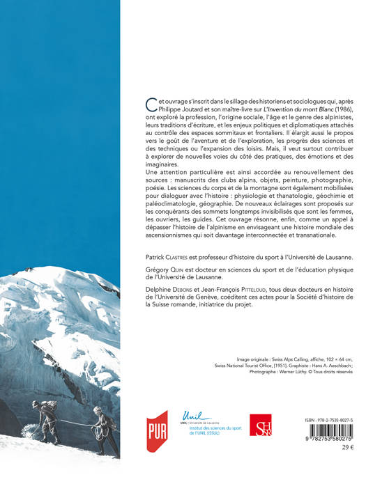 Cet ouvrage explore l'alpinisme par de nouvelles voies, celles des pratiques, des émotions et des imaginaires. Une attention particulière est accordée au renouvellement des sources : manuscrits des clubs alpins, objets, peinture, photographie, poésie. Les sciences du corps et de la montagne sont également mobilisées pour dialoguer avec l'histoire : physiologie et thanatologie, géochimie et paléoclimatologie, géographie. De nouveaux éclairages sont proposés sur les conquérants des sommets longtemps invisibilisés que sont les femmes, les ouvriers et les guides.