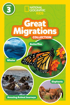 FOUR BOOKS IN ONE! Journey across the globe and explore fascinating animal migrations with crabs, walruses, zebras, and more in this captivating Level 3 Reader collection from National Geographic Kids. The perfect gift for animal lovers ready to read on their own. Discover the awe-inspiring journeys of migrating animals driven by their natural instincts to walk, fly, and swim vast distances for survival in this four-book collection from National Geographic Kids. Soar thousands of miles across North America with monarch butterflies as they complete their seasonal migration! Follow Mali's desert elephants as they set out on their annual journey in search of food and water. Travel with a pod of sperm whales as they swim between tropical and polar waters in search of food and mates. And along the way, learn fun facts about these fascinating animals and the unique challenges they face on their journeys.