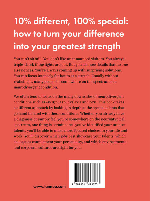 You can't sit still. You don't like unannounced visitors. You always triple-check if the lights are out. But you also see details that no-one else notices. You're always coming up with surprising solutions. You can focus intensely for hours at a stretch. Usually without realising it, many people lie somewhere on the spectrum of a neurodivergent condition. We often tend to focus on the many downsides of neurodivergent conditions such as AD(H)D, ASD, dyslexia and OCD. This book takes a different approach by looking in depth at the special talents that go hand in hand with these conditions. Whether you already have a diagnosis or simply feel you're somewhere on the neuroatypical spectrum, one thing is certain: once you've identified your unique talents, you'll be able to make more focused choices in your life and work. You'll discover which jobs best showcase your talents, which colleagues complement your personality, and which environments and corporate cultures are right for you.