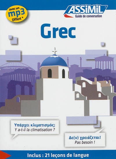 Quelques jours à Athènes ou dans les Cyclades ? Le créateur de la célèbre méthode Assimil a conçu pour vous le compagnon indispensable de votre week-end ou séjour en Grèce. Initiation à la langue : 21 leçons de grec Les phrases et les mots indispensables Toute la prononciation Toutes les situations du voyage …