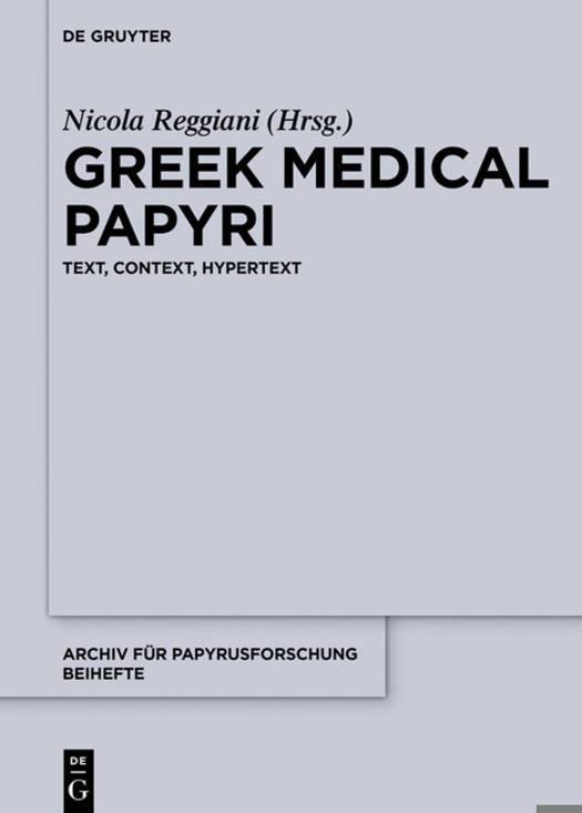 The volume collects papers presented at the International Conference "Greek Medical Papyri - Text, Context, Hypertext" held at the University of Parma on November 2-4, 2016, as the final event of the ERC project DIGMEDTEXT, aimed primarily at creating an online textual database of the Greek papyri dealing with medicine. The contributions, authored by outstanding papyrologists and historians of the ancient medicine, deal with a variety of topics focused on the papyrological evidence of ancient medical texts and contexts. The first part, devoted to "medical texts", contains some new reflections on important sources such as the Anonymus Londinensis and the Hippocratic corpus, as well as on specific themes like the pharmacological vocabulary, the official medical reports, the medical care in the Roman army. The second part collects papers about the "doctors' context", providing highlights from broader viewpoints like the analysis of the writing supports, the study of the ostraka from the Eastern Desert, the evidence of inscriptions and philosophical texts. The third part is entirely focused on the DIGMEDTEXT project itself: the team members present some relevant key issues raised by the digitisation of the medical papyri.