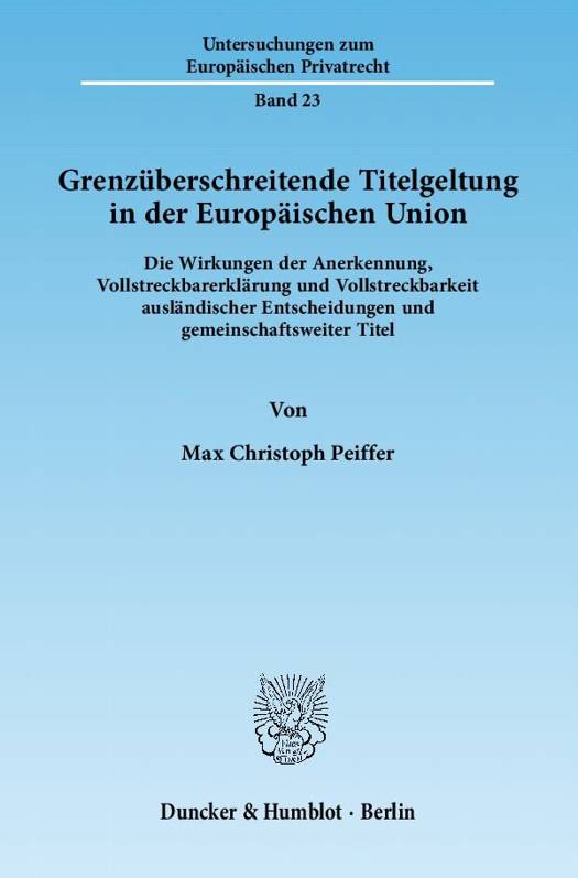 Werden Zivilurteile im Ausland durchgesetzt, stellt sich die Frage, welche Wirkungen sie dort zeitigen. Dieses klassische Problem des Internationalen Zivilverfahrensrechts behandelt Max Peiffer auf Grundlage eines Vergleichs des deutschen, englischen und französischen Rechts. Sowohl für die Anerkennung ausländischer Urteile als auch deren Vollstreckbarerklärung entwickelt er ein eigenes Wirkungsmodell. Dabei zeigt sich, dass beiden Arten des Titelimports - entgegen einer verbreiteten These - derselbe Wirkmechanismus zugrunde liegt. Dieser ist - wie der Autor nachweist - auch dazu geeignet, die Effekte der neuen gemeinschaftsweit gültigen Titel des europäischen Rechts (u.a. EuTitelVO, EuMahnVO, EuBagatellVO) zu erklären. Max Peiffer liefert nicht nur einen theoretischen Beitrag, sondern beantwortet auch diverse Einzelfragen der Anerkennung und Vollstreckung ausländischer Titel.