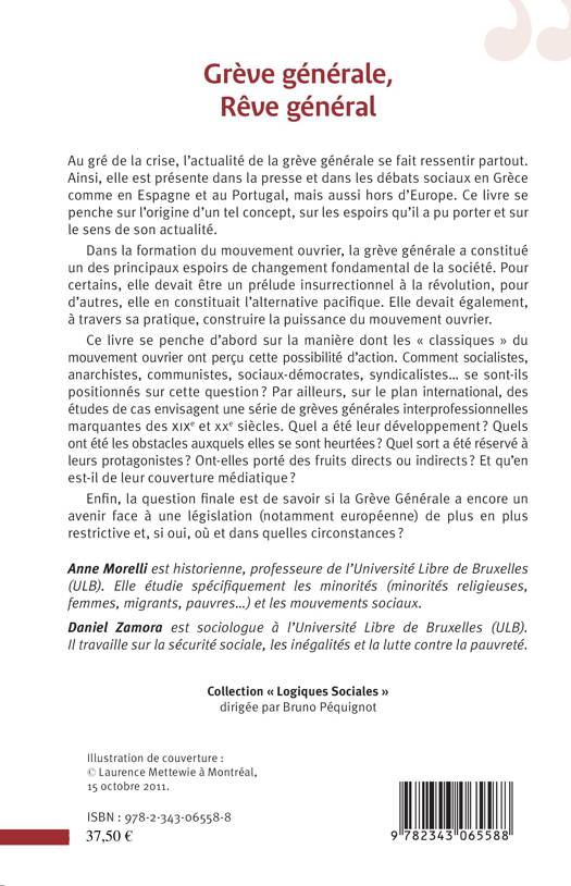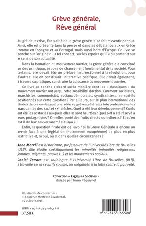 Au gré de la crise, l’actualité de la grève générale se fait ressentir partout. Dans la formation du mouvement ouvrier, elle a constitué un des principaux espoirs de changement de la société. Elle devait être un prélude insurrectionnel à la révolution pour les uns, elle constituait l'alternative pacifique pour les autres. Comment les classiques du mouvement ouvrier ont-ils perçu cette possibilité d'action ? Des études de cas envisagent une série de grèves générales marquantes des XIXe et XXe siècle. Ont-elles porté des fruits directs ou indirects ? Face à une législation (notamment européenne) de plus en plus restrictive, la grève générale a-t-elle encore un avenir ?