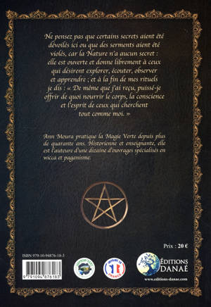 Ne pensez pas que certains secrets aient été dévoilés ici ou que des serments aient été violés, car la Nature n'a aucun secret : elle est ouverte et donne librement à ceux qui désirent explorer, écouter, observer et apprendre ; et à la fin de mes rituels je dis : "De même que j'ai reçu, puissé-je offrir de quoi nourrir le corps, la conscience et l'esprit de ceux qui cherchent tout comme moi." En tenant ce Livre des Ombres dans vos mains, vous acceptez de moi ce que vous recherchez - de quoi nourrir votre corps, votre conscience et votre esprit. Prenez et utilisez ce qui vous appelle, changez ou modifiez les choses qu'il vous semble bon de modifier, et écrivez vos propres données sur les pages blanches laissées dans ce but, car un Livre des Ombres et un Grimoire grandit à chaque génération. Laissez enfin ce livre être un guide pour vous car vous parcourez votre propre chemin en compagnie de la Déesse et du Dieu. Que votre Art se pare de joie, que le Divin vous inspire et "Que Soient Bénis Tes Pieds Qui Te Conduisent Sur Ton Chemin."