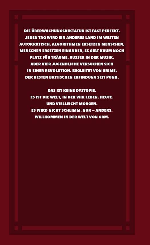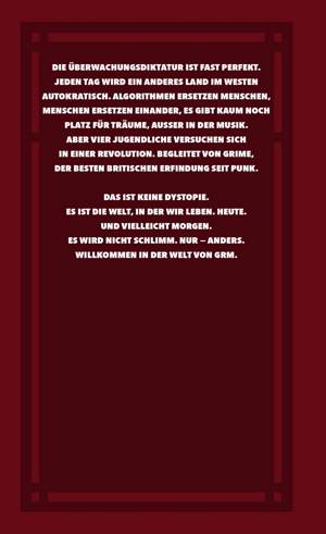 Die Brave New World findet in wenigen Jahren statt. Vielleicht hat sie auch schon begonnen. Jeden Tag wird ein anderes westliches Land autokratisch. Algorithmen, die den Menschen ersetzen, liegen als Drohung in der Luft. Großbritannien, wo der Kapitalismus einst erfunden wurde, hat ihn inzwischen perfektioniert. Aber vier Kinder spielen da nicht mit - sondern gegen die Regeln. Und das mit aller Konsequenz. Willkommen in der Welt von GRM.