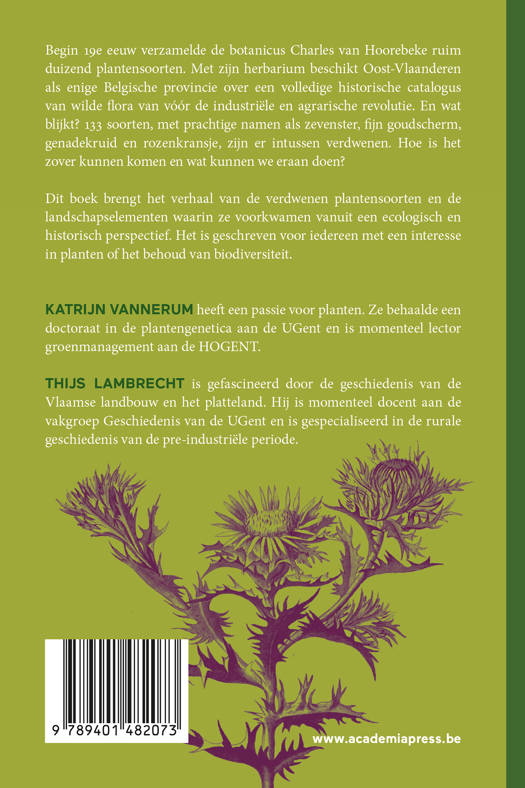 Dit boek brengt het verhaal van de verdwenen plantensoorten en de landschapselementen waarin ze voorkwamen vanuit een ecologisch en historisch perspectief. Het is geschreven voor iedereen met een interesse in planten of het behoud van biodiversiteit.