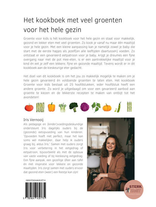 Groente voor kids is hét kookboek voor het hele gezin en staat voor makkelijk, gezond en lekker eten met veel groenten. Zo kook je vanaf nu maar één maaltijd voor je hele gezin. Met een kleine aanpassing kan je namelijk zowel je baby die start met de eerste hapjes als jezelf(en alle leeftijden daartussen) voeden. Zo ontstaat er een gevarieerd eetpatroon voor je baby, krijgt je dreumes een fijne overgang naar met de pot mee-eten, is er een aantrekkelijke maaltijd voor je kind én eet je zelf een lekkere, fijne en gezonde maaltijd. Tevens wordt er in dit kookboek aan de kieskeurige eter gedacht.