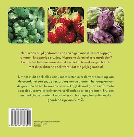U vindt in dit boek alles wat u moet weten over de voorbereiding van de grond, het zaaien, de verzorging van de planten, het oogsten van de groenten en het bewaren ervan. U krijgt de nodige basisinformatie voor de succesvolle teelt van verschillende soorten groenten, kruiden en medicinale planten. En dat alles via handige plantenfiches die geordend zijn van A tot Z.