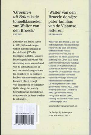 Groenten uit Balen speelt in 1971, tijdens de negen weken durende staking bij het zinkbedrijf Vieille Montagne in Balen. Van den Broeck geeft het relaas van de staking weer aan de hand de gebeurtenissen in een van de stakersgezinnen. De situaties en de dialogen hebben een onweerstaanbaar komisch effect, terwijl Van den Broeck er tegelijkertijd in slaagt het sociale bewustzijn van zowel de toeschouwer als de lezer wakker te schudden.