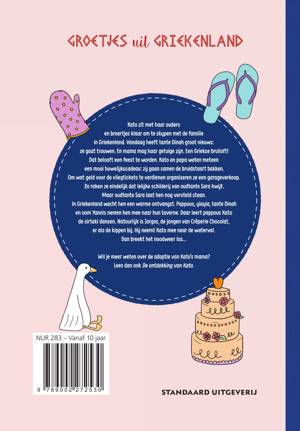 Kato zit met haar ouders en broertjes klaar om te skypen met de familie in Griekenland. Vandaag heeft tante Dinah groot nieuws: ze gaat trouwen. En mama mag haar getuige zijn. Een Griekse bruiloft! Dat belooft een feest te worden. Kato en papa weten meteen een mooi huwelijkscadeau: zij gaan samen de bruidstaart bakken. Om wat geld voor de vliegtickets te verdienen organiseren ze een garageverkoop. Zo raken ze eindelijk dat lelijke schilderij van oudtante Sara kwijt. Maar oudtante Sara laat hen nog versteld staan. In Griekenland wacht hen een warme ontvangst. Pappous, yiayia, tante Dinah en oom Yannis nemen hen mee naar hun taverne. Daar leert pappous Kato de sirtaki dansen. Natuurlijk is Jorgos, de jongen van Crêperie Chocolat, er als de kippen bij. Hij neemt Kato mee naar de waterval. Dan breekt het noodweer los…