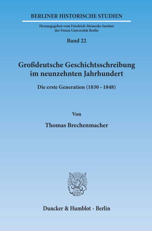 Die Geschichte der großdeutschen Historiographie im 19. Jahrhundert beabsichtigt, eine Erinnerungslücke innerhalb der Geschichte des Faches zu schließen. Sie legt dar, warum diese Historiographie für ihre Zeit bedeutend war, worin ihre Leistungen, worin ihre Irrtümer lagen, sowohl hinsichtlich der inhaltlichen Kenntnis und Erkenntnis deutscher Geschichte als auch hinsichtlich der Ausbildung der wissenschaftlichen Disziplin "Geschichte". Die vorliegende Arbeit entwickelt hierfür zunächst ein weites Konzept, das nicht nur die Jahre der tagespolitischen Aktualität des Großdeutsch-Kleindeutsch-Gegensatzes zwischen 1848/49 und 1866/71 umgreift, sondern über drei Historikergenerationen hinweg die Zeit der eigentlichen Entstehung großdeutscher Geschichtsschreibung seit etwa 1830 ebenso mit einbezieht wie deren Weiter- und Umbildung in den Jahren nach der Reichsgründung, bis ins 20. Jahrhundert hinein (Einleitung). Der anschließend ausgeführte, in sich geschlossene erste Teil dieses Konzepts behandelt dann anhand der Werke sowie anhand von Korrespondenzen und unveröffentlichtem Nachlaßmaterial die Grundlegungen und Anfänge großdeutscher Historiographie zwischen 1830 und 1848 am Beispiel fünf ausgewählter Historiker der "ersten Generation": Johann Friedrich Böhmer, Friedrich Emanuel Hurter, August Friedrich Gfrörer, Ignaz Döllinger und Constantin Höfler.
