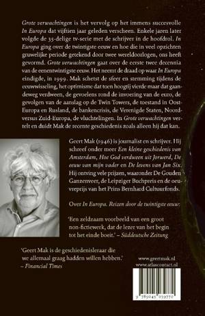 In ‘Grote verwachtingen’ vertelt en duidt Geert Mak de recente geschiedenis zoals alleen hij dat kan. Het is het vervolg op het immens succesvolle ‘In Europa’ dat vijftien jaar geleden verscheen. Enkele jaren later volgde de 35-delige tv-serie met de schrijver in de hoofdrol. In Europa ging over de twintigste eeuw en hoe die in veel opzichten gruwelijke periode getekend door twee wereldoorlogen, ons heeft gevormd. ‘Grote verwachtingen’ gaat over de eerste twee decennia van de eenentwintigste eeuw. Het neemt de draad op waar ‘In Europa’ eindigde, in 1999. Mak schetst de sfeer en stemming tijdens de eeuwwisseling, het optimisme dat toen hoogtij vierde maar dat gaandeweg verdween, de gevoelens rond de invoering van de euro, de gevolgen van de aanslag op de Twin Towers, de toestand in Oost-Europa en Rusland, de bankencrisis, de Verenigde Staten, Noord- versus Zuid-Europa, en de vluchtelingen.