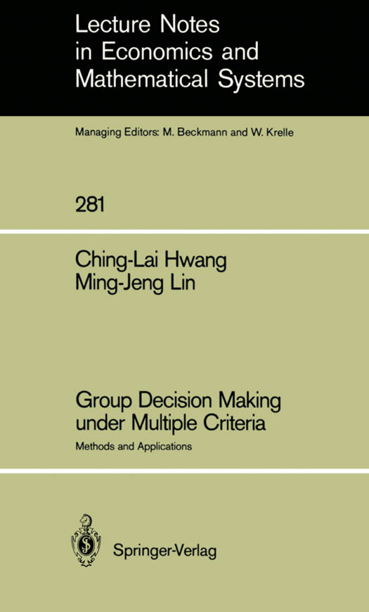 This monograph is intended for an advanced undergraduate or graduate course of engineering and management science. as well as for persons in business. industry. military or in any field. who want an introductory and a capsule look into the methods of group decision making under multiple criteria. This is a sequel to our previous works entitled "Multiple Objective Decision Making--Methods and Applications (No. 164 of the Lecture Notes). and "Multiple Attribute Decision Making--Methods and Applications (No. 186 of the Lecture Notes). Moving from a single decision maker (the consideration of Lecture Notes 164 and 186) to a multiple decision maker setting introduces a great deal of complexity into the analysis. The problem is no longer the selection of the most preferred alternative among the nondominated solutions according to one individual's (single decision maker's) preference structure. The analysis is extended to account for the conflicts among different interest groups who have different objectives. goals. and so forth. Group decision making under multiple criteria includes such diverse and interconnected fields as preference analysis. utility theory. social choice theory. committee decision theory. theory of voting. game theory. expert evaluation analysis. aggregation of qualitative factors. economic equilibrium theory. etc; these are simplified and systematically classified for beginners. This work is to provide readers with a capsule look into the existing methods. their characteristics. and applicability in the complexity of group decision making.