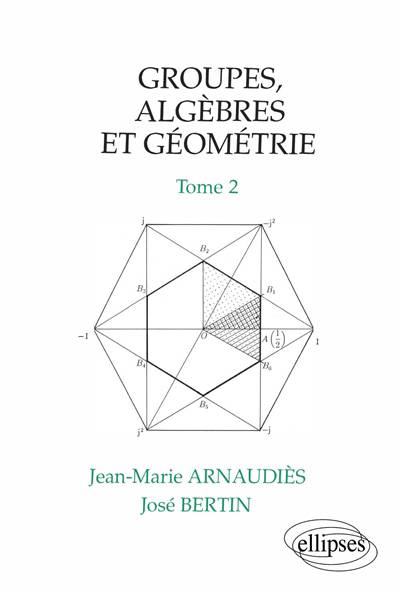 Ce tome 2 est consacré à la pénétration des méthodes algébriques en Géométrie. Jean-Marie Arnaudiès et José Bertin tiennent les promesses faites non seulement aux candidats aux Agrégations externe et interne de Mathématiques, mais au-delà, à tous ceux que passionnent cette science ou qui s'y destinent, comme les étudiants de deuxième et troisième cycle des Universités. Les auteurs ont bâti ce tome 2 autour de deux théories majeures : la cristallographie, et la représentation linéaire des groupes finis, qui mettent en œuvre tous les outils algébriques progressivement introduits : produit tensoriel, groupes topolo-giques, modules sur les anneaux principaux, réseaux, algèbres semi-simples… De nombreux exemples, dont beaucoup non-évidents, appuient le texte. En outre, les auteurs démontrent cinq grands théorèmes qui ne sont que très rarement mis à la disposition d'un Public aussi large : les deux théorèmes de Bieberbach en cristallographie (le topologique, et celui de finitude), les théorèmes de finitude de Hermite-Minkowski et de Jordan-Zassenhaus, et enfin le théorème de Frobenius qui donne le calcul explicite des caractères irréductibles des groupes symétriques ; ce dernier théorème couronne une étude minutieuse et exhaustive des représentations des groupes symétriques. Ce livre contient notamment : 329 théorèmes, 218 propositions, 115 corollaires et 65 lemmes, avec leur démonstration ; 161 définitions et 106 exemples développés. Il est illustré de 36 figures.