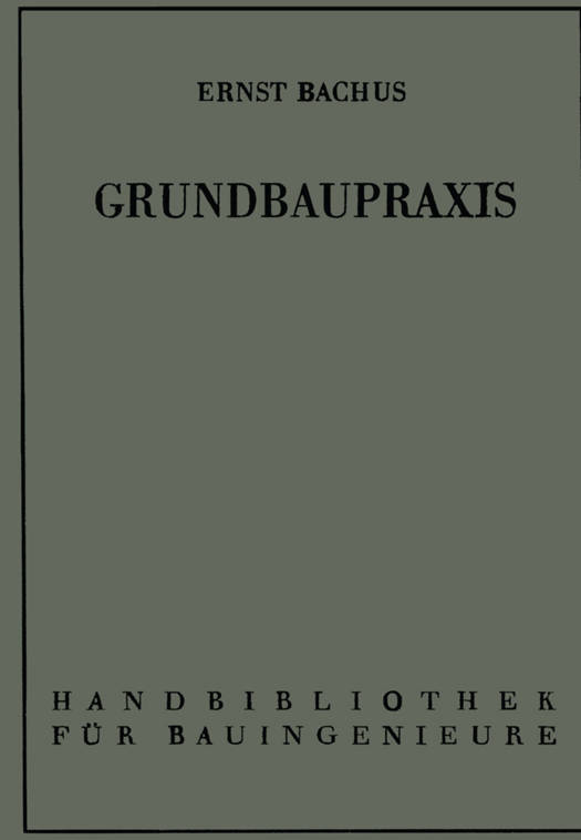 Dieses Buch entspringt einer Anregung des leider zu friih verstorbenen Professors Dr. -lng. F. SCHLEICHER und solI aus dem gro. Ben Gebiet des Grund- baues, fiir das an Stelle des bisher vorhandenen einen Buches "Der Grundbau" von FRANZIUS nun zwei Bande im Rahmen der Handbibliothek vorgesehen sind, nur den praktischen Teil behandeln. Es gibt eine Reihe neuerer Biicher, die dem Grundbau gewidmet sind, denen eine iiberwiegend wissenschaftliche Behandlung gemeinsam ist, begiinstigt durch die unbestreitbaren Fortschritte in Forschung und Lehre, insbesondere auf dem Gebiet des Versuchswesens und der Boden- mechanik. Der Blick auf die benachbarten Gebiete des Bauingenieurwesens, insbesondere der Briickenstatik und des Hochhausbaues, wo die Rechenkunst Triurnphe feiert - statische Berechnungen, die mehrere 1000 Seiten umfassen, sind keine Seltenheit -, wirkt belebend auch auf das Gebiet des Grundbaues. Gewi. B werden die Grundlagen der Berechnung auch hier immer sorgfaltiger er- forscht und die Rechenmethoden verfeinert, aber auch zwischen dem reinen Versuch und den daraus ermittelten theoretischen Grundlagen klafft immer noch der Unterschied wie zwischen den abstrakten Annahmen der reinen Reibung und Homogenitat gegeniiber der meist auch ortlich vielialtigen Natur des Unter- grundes. Man kann und darf daher auf diesem Gebiet die Annaherung an den Sicherheitsgrad nicht so weit treiben, wie sie bei den als Beispiel genannten Sparten heute oft gebracht wird, ebenso wie eine Berechnung auf 3 Dezimalen langst als unlogisch erkannt ist.